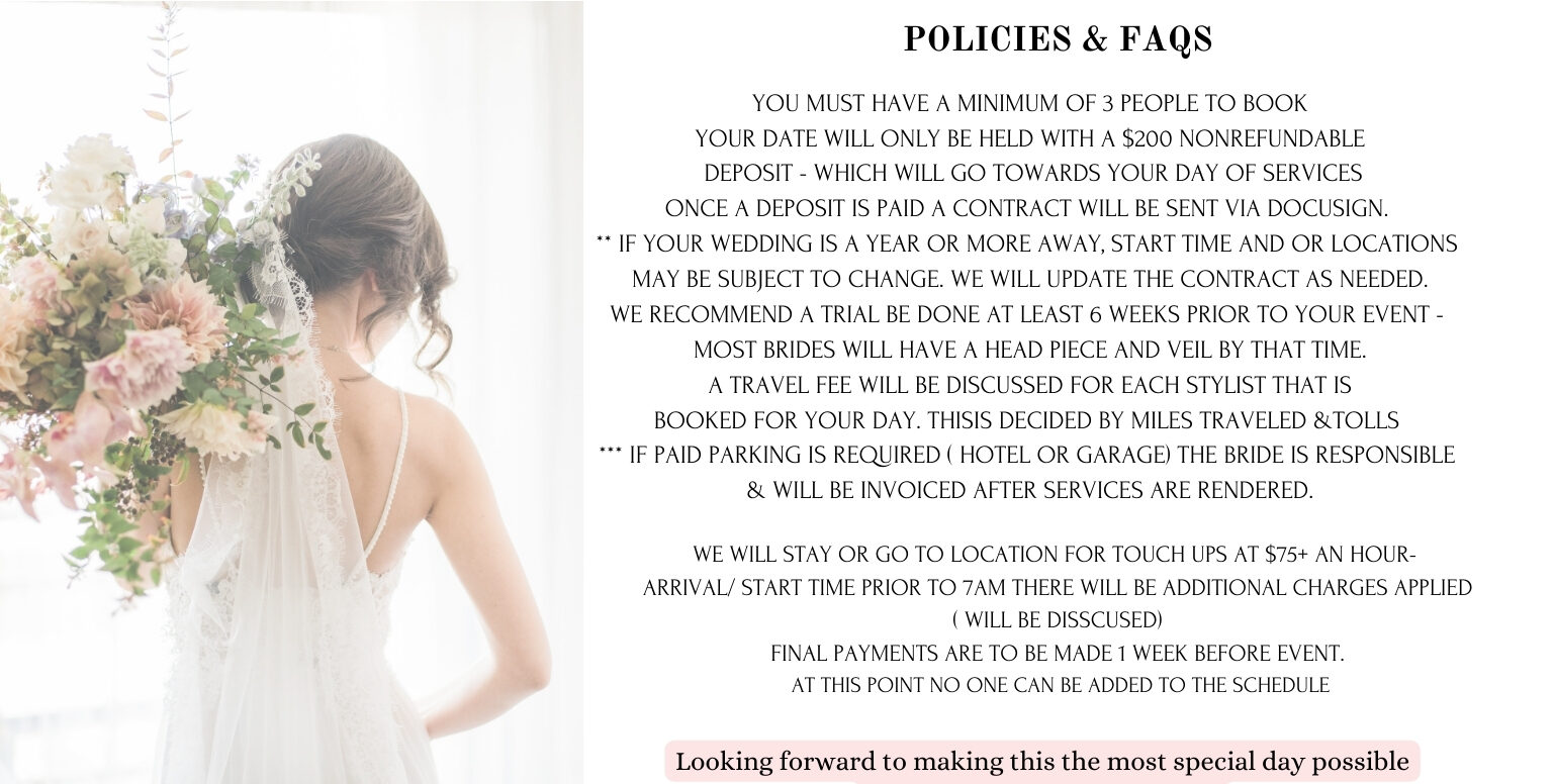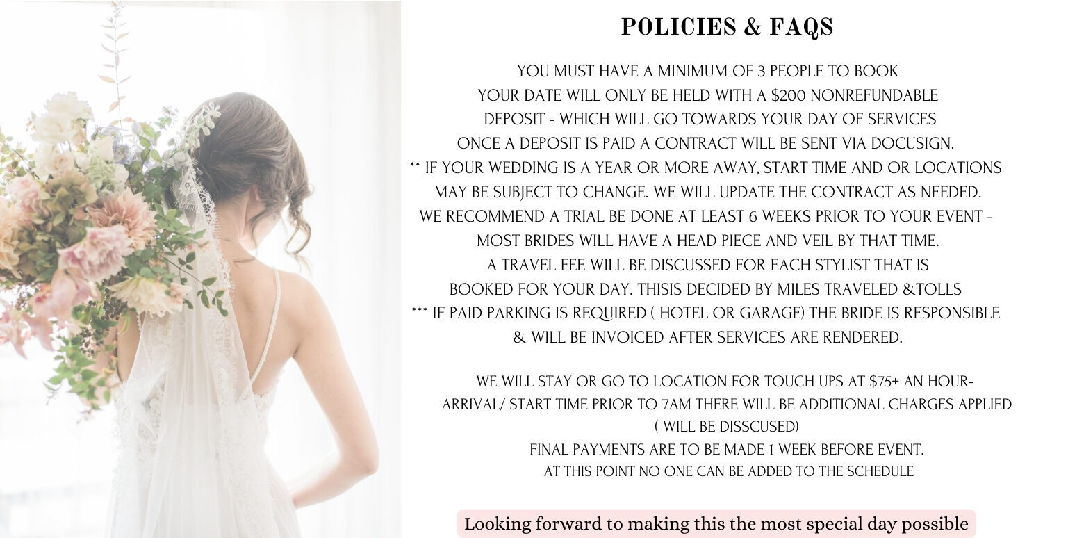 Ensure your entire bridal party looks beautiful with our comprehensive hair and makeup services. We can accommodate groups of all sizes, providing personalized attention to each member of your party. Our goal is to create a cohesive look that enhances the beauty of everyone in your bridal party.